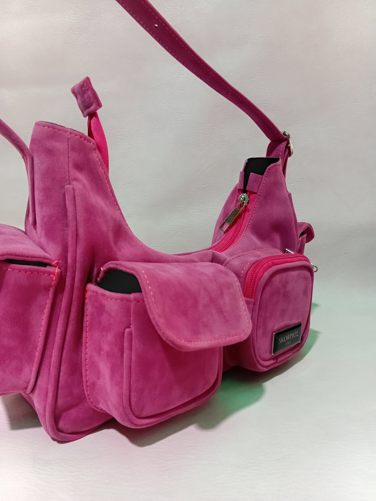 Confeccionada en suave gamuza, combina volumen, funcionalidad y detalles sofisticados que elevan cualquier outfit.